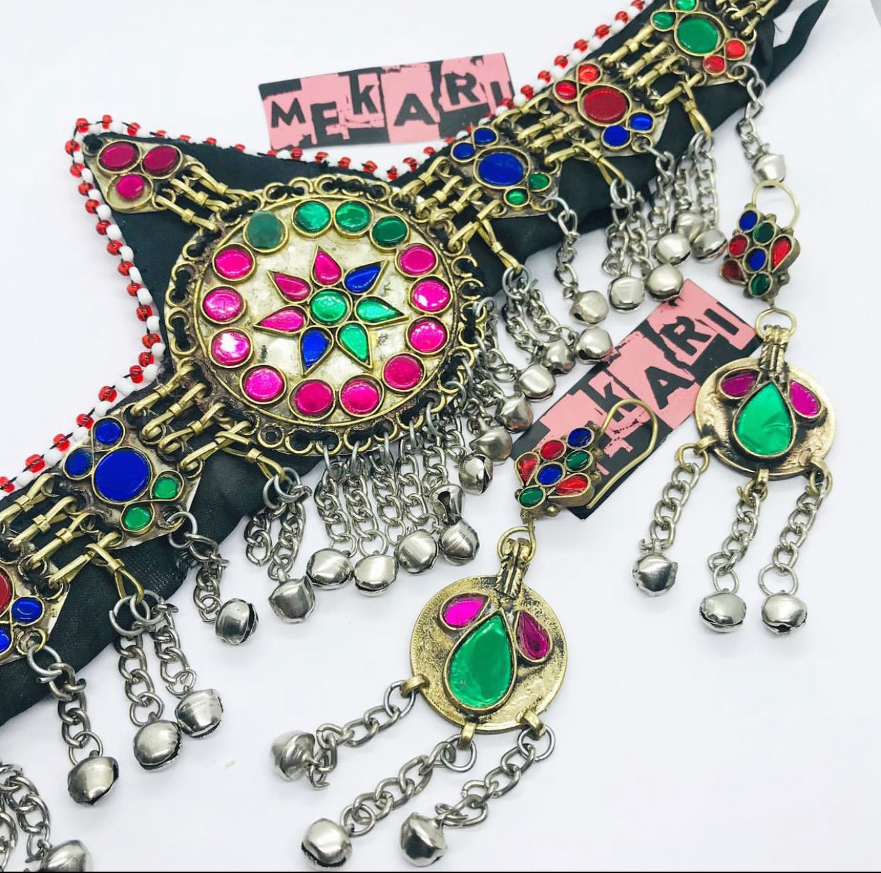 Elevate your style with this daring Afghan Mathaptti, a stunning headpiece inspired by rich Afghan culture. Featuring beautifully layered ghungru chains and adorned with vibrant multi-colored stones, it captures traditional elegance with a bold, modern edge. Perfect for making a powerful statement at any occasion.