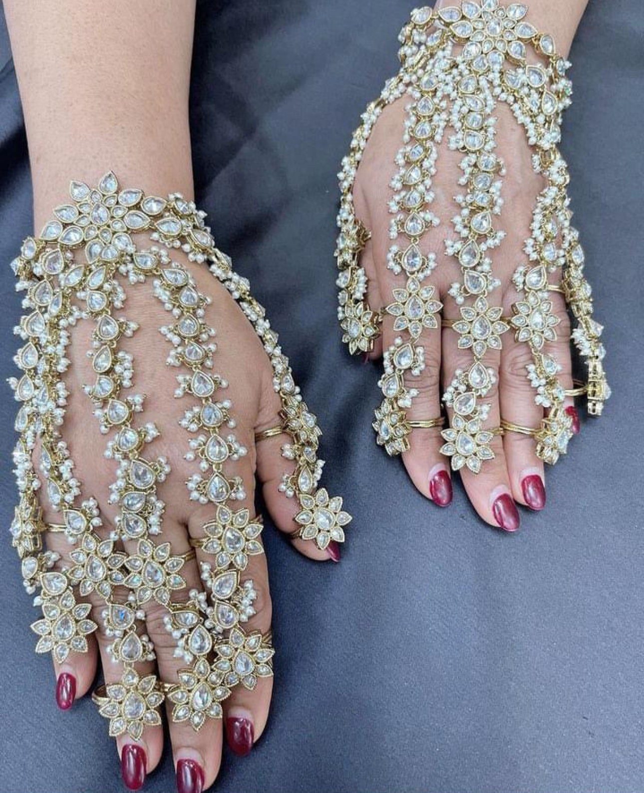 Premium quality hath phool crafted in brass with a fine finish. Skin-friendly with smooth edges, durable for weddings, parties, or gifting. Price is for a pair.