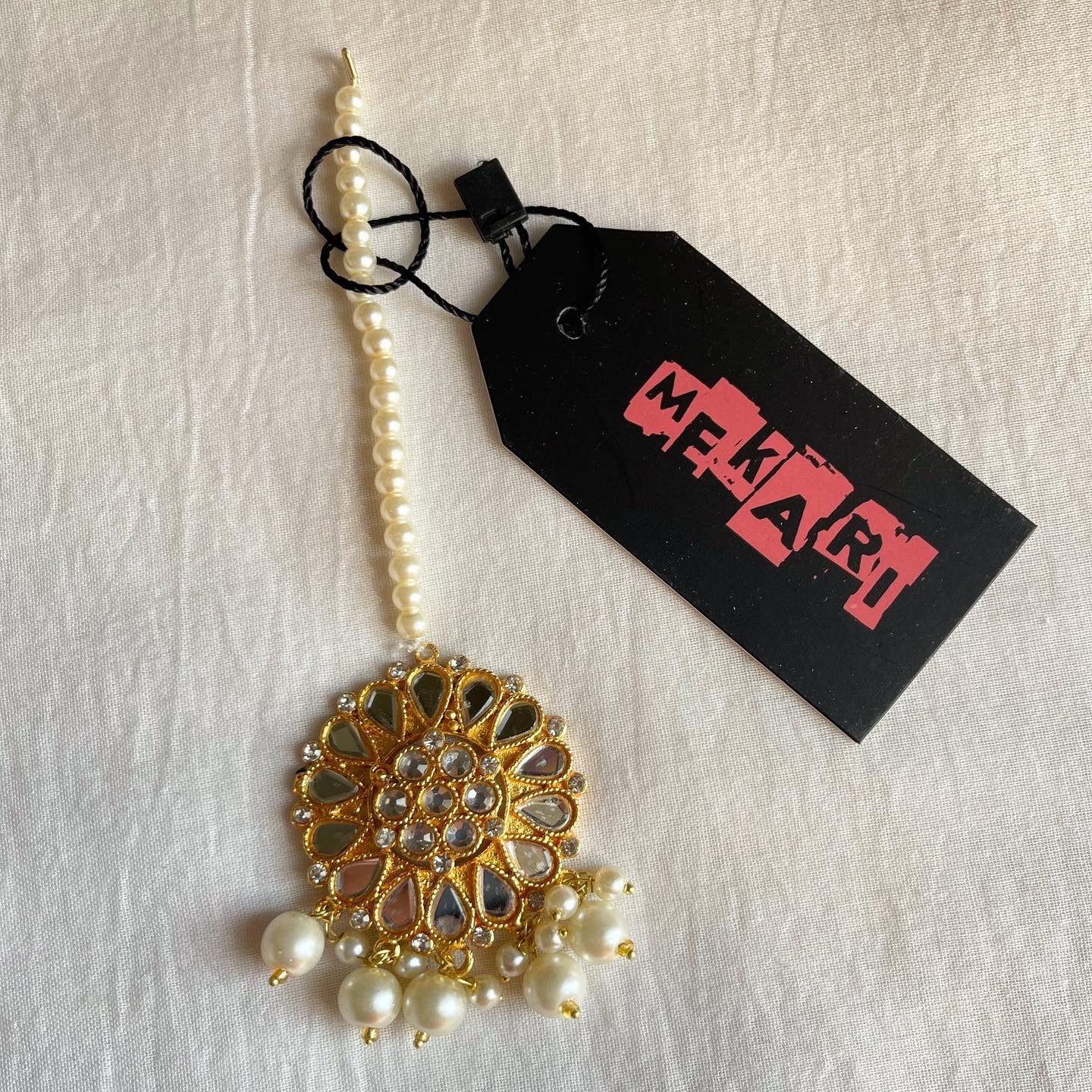 Elevate your traditional look with the Phool Teeka, featuring exquisite Bhawalpuri kundan work that combines lightweight comfort with elegant design. This gold-plated piece is beautifully accented with a delicate pearl string and mirror kundan details, adding a touch of sophistication. Available in rich maroon and classic pearl, it can be customized to perfectly match your style for any special occasion. Embrace heritage with a piece that promises both beauty and comfort.