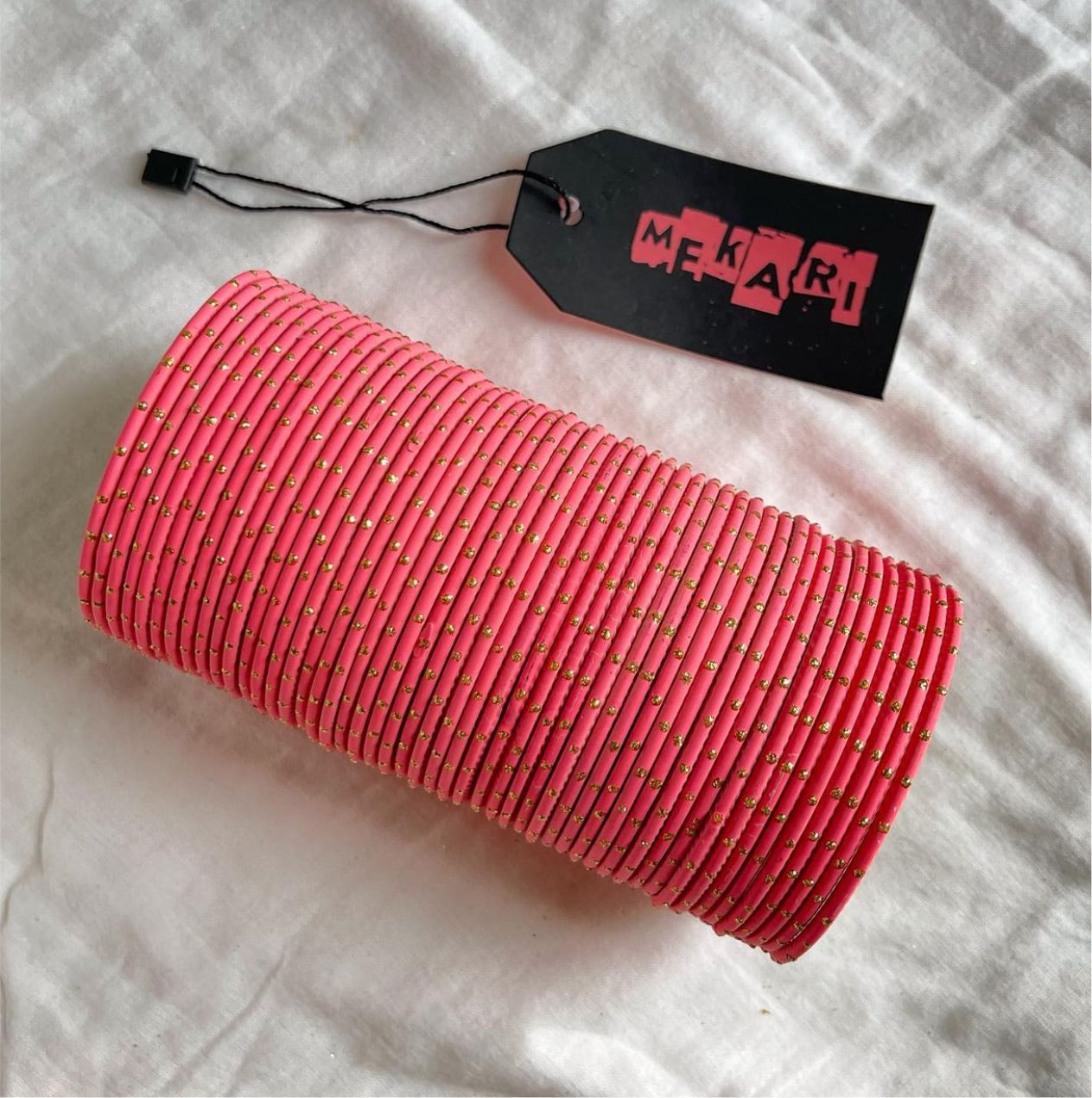 Made of metal with a soft peach finish, skin-friendly with smooth edges. Elegant and durable, perfect for daily wear, parties, and weddings. Sold in a set of 3 dozen. Limited pieces imported from India.
