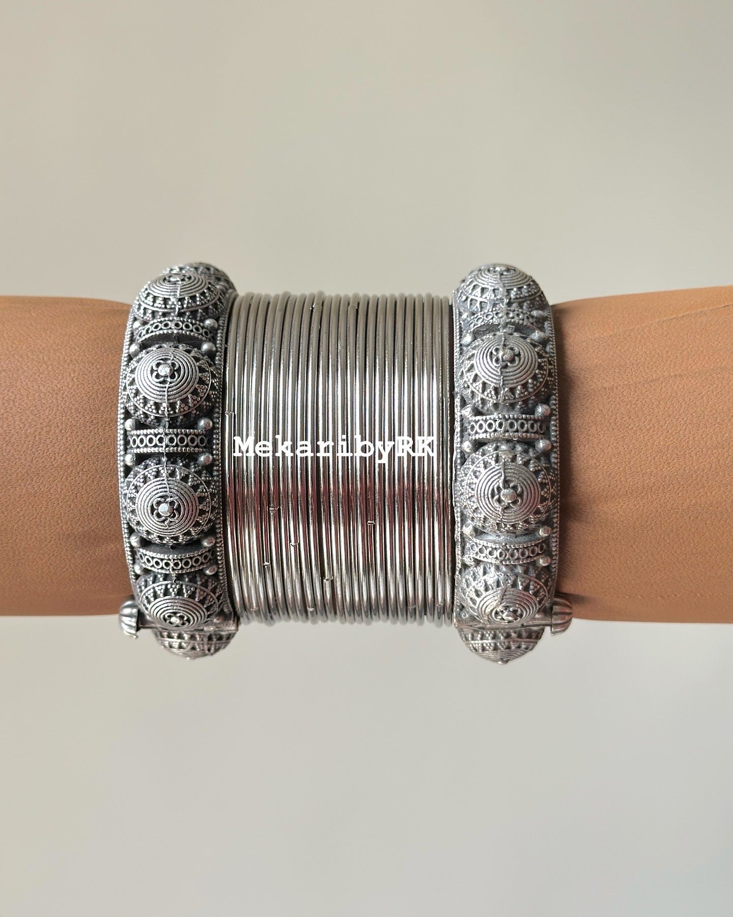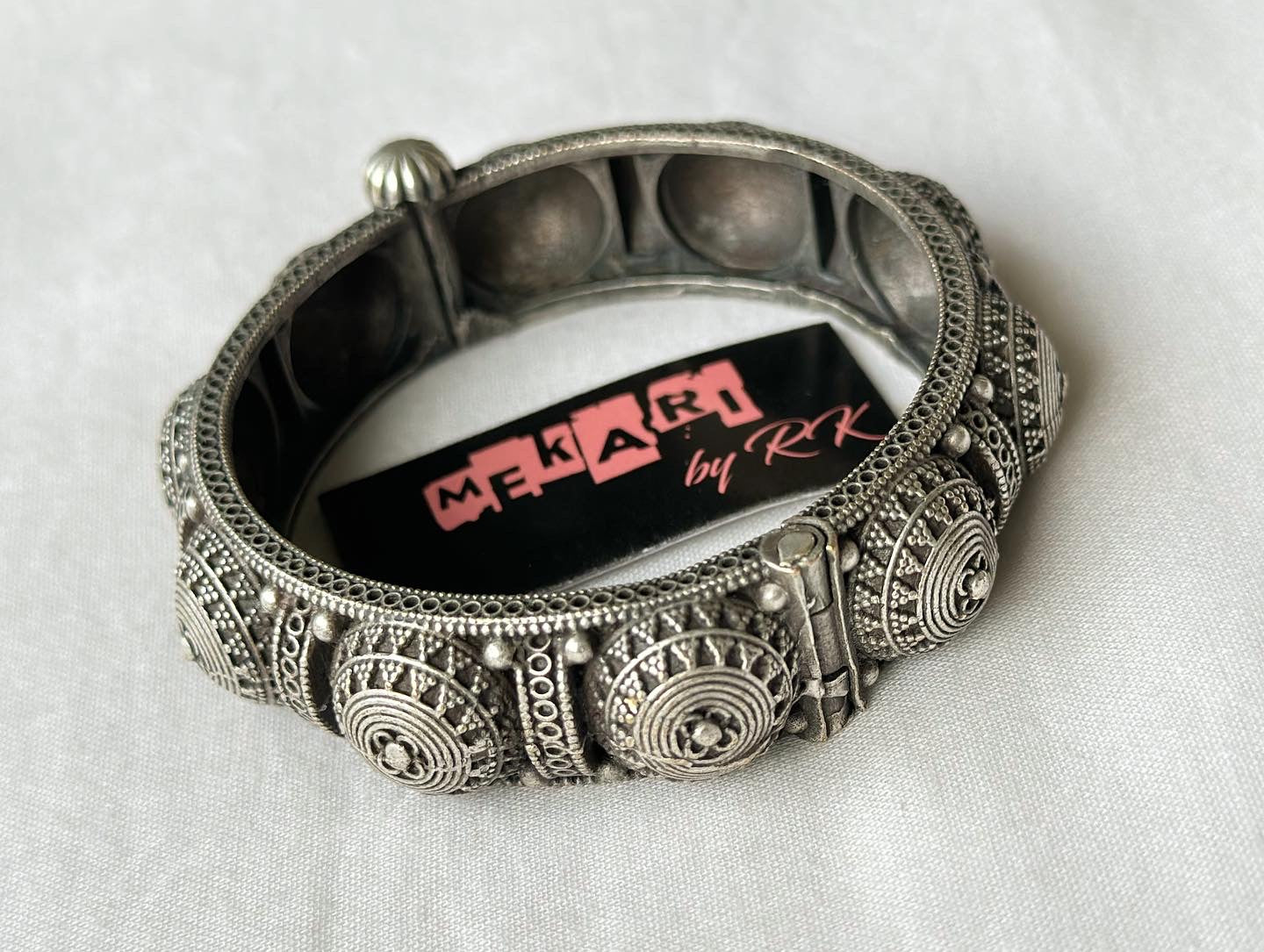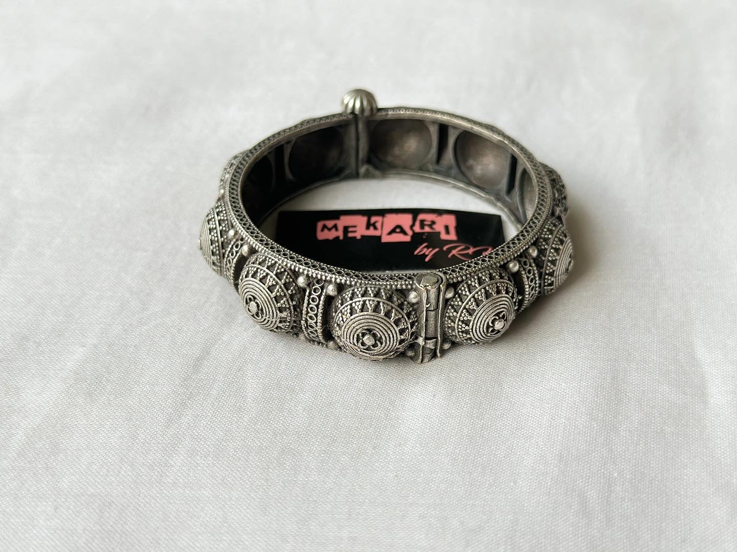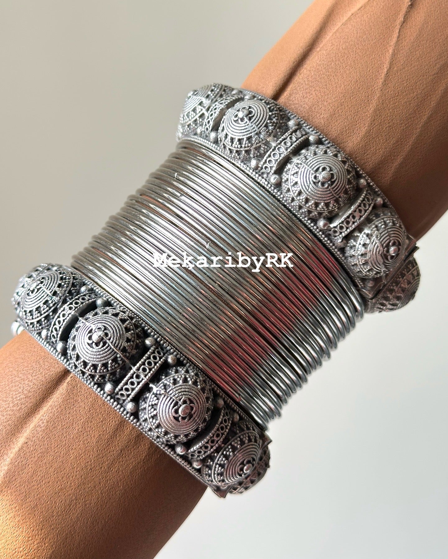 Crafted in oxidised German silver with an adjustable design. Premium quality, skin-friendly with smooth edges, durable for weddings, parties, or gifting. Only few pieces imported from India.