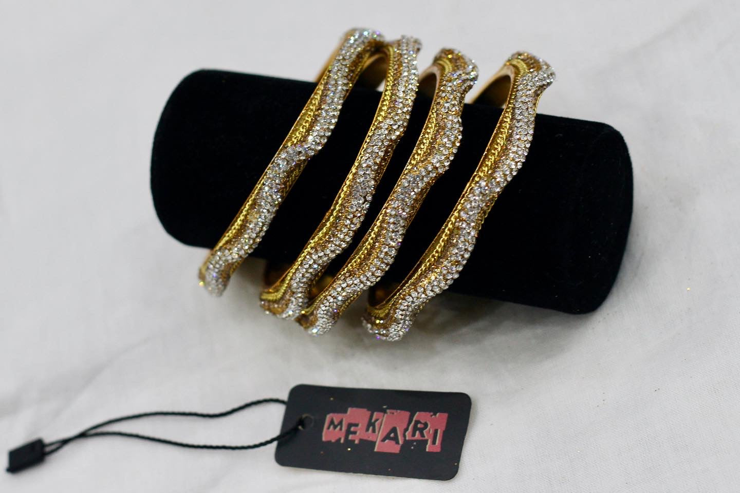 Gold plated with zircon embellishment. Skin-friendly with smooth edges, durable for weddings, parties, or gifting. Price is for a pair.