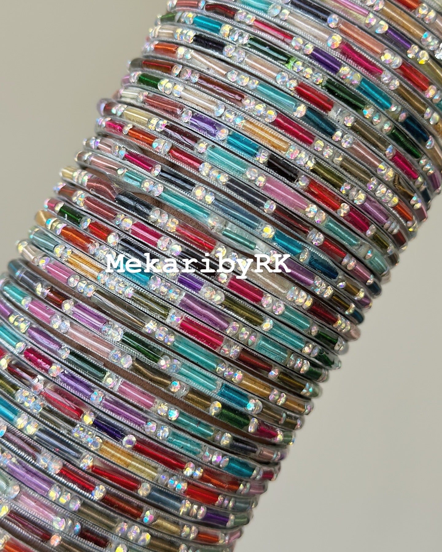 Metal bangles in a classic white shade. Skin-friendly with smooth edges, durable for daily wear, parties, weddings, or gifting. Price is for one dozen.