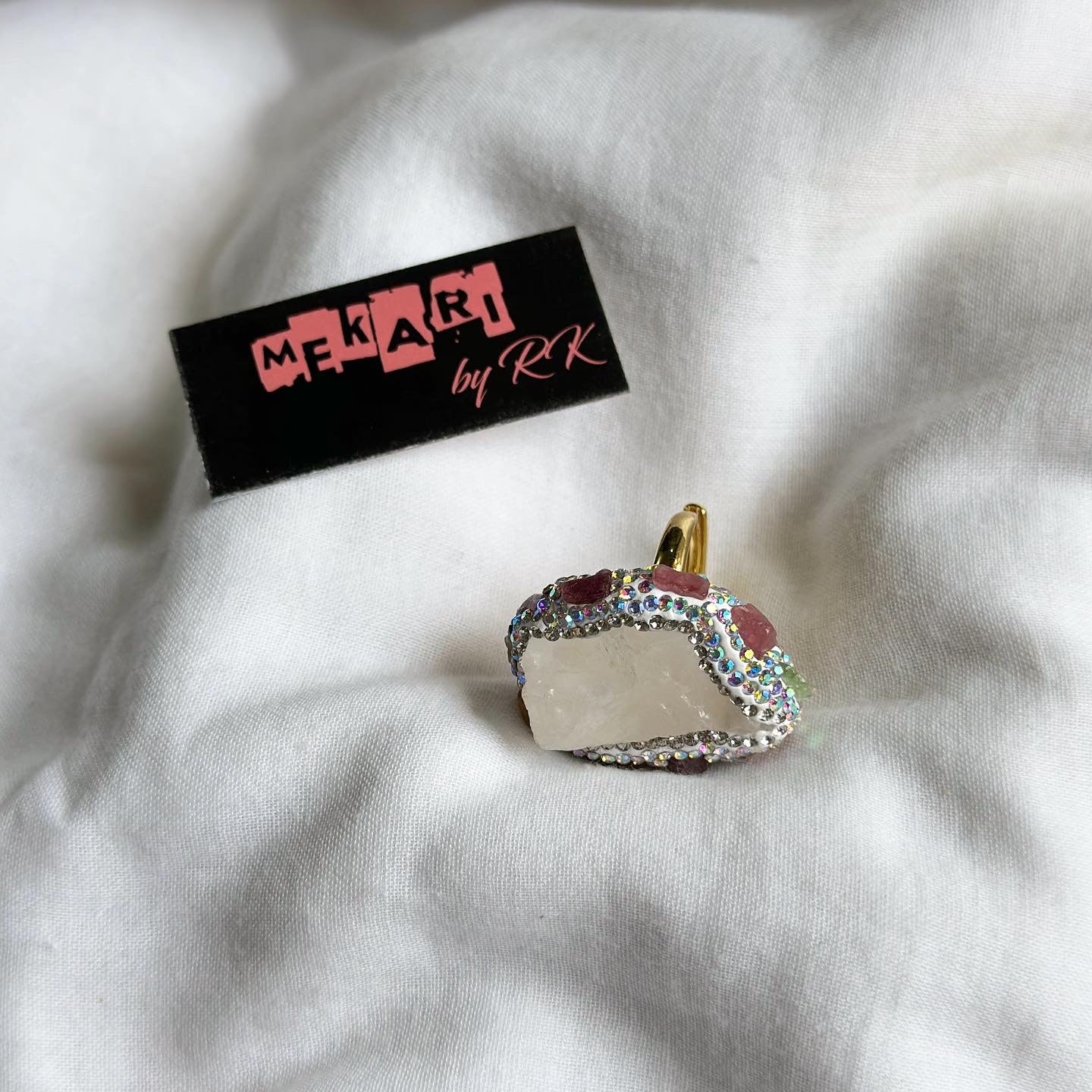 Crafted with high-quality semiprecious stones, this ring features a milky opal-like centerpiece and a gold-plated finish. Available in a standard size.